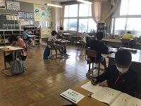 みんな、真剣な表情で取り組んでいます。今日は、4・5・6年生の欠席はなく、全員実施することができています。わからないところや少し難しい問題にも、最後まであきらめないで取り組む“やりぬく”力も大切です。