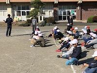 1年生にとっては、初めての経験ですが、幼稚園や保育園で走ったことがある子や、去年走った経験のある2年生は、「途中で苦しくなるから、始めから速く走らない方がいいんだよ。」と話したり、兄姉のいる人が、「腕をしっかり振るといいよ。」「ラストスパートで、前の人を抜かすといいんだって。」などと教えてくれたりしていました。