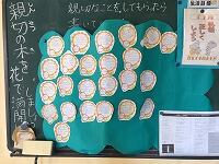 友だちにしてもらった親切なことを、花の形のカードに書き、貼ります。