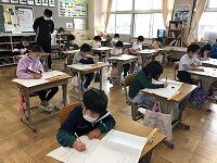 2時間目に、全学年で学力テストを実施しました。1年生は、初めてなので、少々緊張気味!?