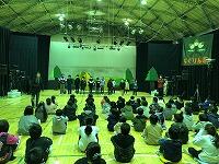 出番を控えた子どもたちの緊張とワクワクのなか、きむらゆういち(作)・あべ弘士(絵)の絵本を原作とした「あらしのよるに」の開演です。