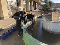 そんな話を聞きつけたのか否か、1年生が外に出てきて…やっぱり「氷すくい」が始まりました。