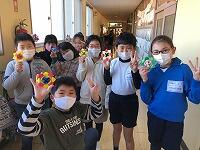 最後に、ボランティアの皆さんが折り紙で作ってくださった「こま」のプレゼントをいただいて、子どもたちは大はしゃぎ