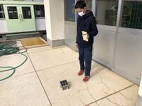 6年生が、昇降口で理科の学習をしていました。時々雲に覆われてしまう太陽の光