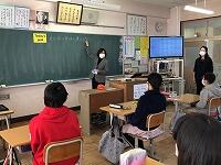 東陽ブロック小中一貫教育の取組の一つで、「中学校教員による乗り入れ授業」があります。今年度は、コロナ禍のため、多くの教科で実施することはできませんでしたが、5時間目に、東陽中の英語の先生が本校で、6年生に英語の授業をしてくださいました。