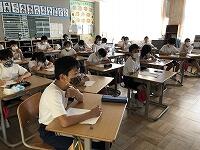みんな、真剣に取り組んでいます。出題範囲は、1学年前の学習内容です。今回のテストで、学力や学習状況を把握・分析して、成果と課題を明らかにして、学力向上に向けて改善を図っていきたいと思います。
