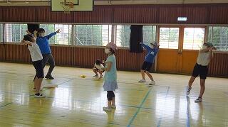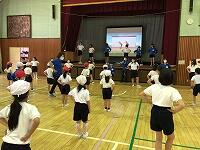 みんな、画像とダンスクラブの人の振りを見ながら、まねして踊りました。担当の先生が、時々ポイントを指導してくれたので、わかりやすく動けるようになりました。