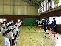 体育主任の先生の話に、しっかりと元気に「はい」と返事をする子どもたち・・・明日は、充実した1日になること、間違いなし!!と、確信しました