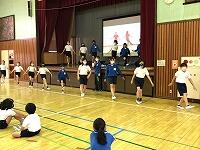 朝礼台の上と前には、ダンスクラブの皆さんが並んで、お手本になって踊ってくれます。