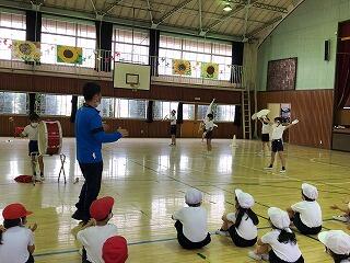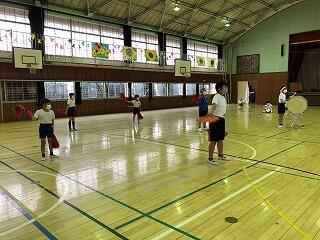 雨だったので、密をさける工夫をしながら、体育館で練習しました。団長中心にがんばっています。