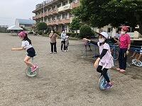 その後、希望者による種目「一輪車パレード」の練習もしました