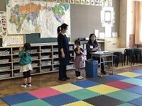 体育主任の先生の話に、しっかりと元気に「はい」と返事をする子どもたち・・・明日は、充実した1日になること、間違いなし!!と、確信しました