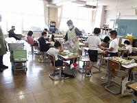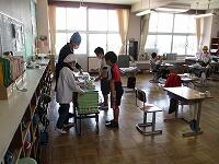 給食当番の皆さんがテキパキと配膳を進めていました。協力しながら進めていて、すばらしいです。