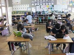 振替休日が明け、梅雨が明け、猛暑日が続いていますね。子どもたちは、元気に登校し、朝の『のびっ子タイム』では、一人一人が自分の課題に向かって、学習に真剣に取り組んでいます。