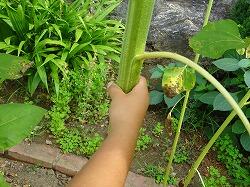 朝、子どもたちが、『ひまわりの花』がたくさん咲いたよと教えてくれました。