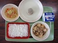 ごはん 四川風マーボー豆腐 にらまんじゅう バンサンスー 牛乳