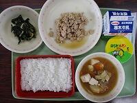 ごはん 2色丼の具(そぼろ) 2色丼の具(ごま和え) 田舎汁
