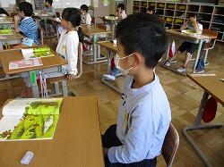今日の室内は、外に比べると蒸し暑かったですね。5時間目の様子なので、ちょっとゆるっと場面はご容赦くださいね。