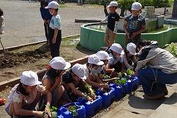 先日、緑化委員会の児童が校庭南側の花壇に種をまきました。