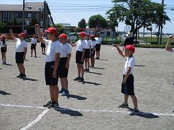 <3・4年生>運動会の学年種目について、みんなで大切なところを確かめていました。