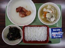 ごはん 鶏の照り焼き ひじきの炒め煮 味噌けんちん汁 牛乳