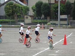 1、2年生が体育の時間にリレーにチャレンジしました。