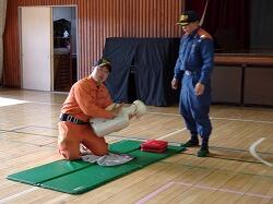 まず、AEDを使用しての心肺蘇生法についてやり方をお聞きした後、全職員が1人ずつ訓練を行いました。また、喉に異物をつまらせた場合の取り除き方、異物除去についても研修を受けました。