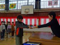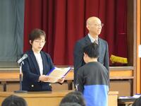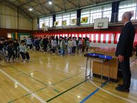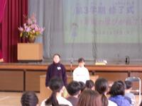 校長先生の話では、まず大きな花丸 で3学期の子どもたちの頑張りがたたえられました。