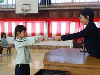 明日は、全校で心を一つにして、温かく、優しい気持ちで6年生を見送りましょうお辞儀