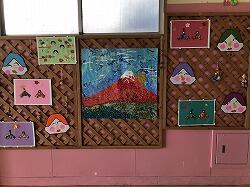 ボランティアさんがお帰りになった後、昇降口に下りてきた児童たちは、「あれ?変わった。」「おひなさまだあ。」と、すぐに壁面の変化に気づいていました。