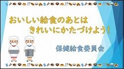 「おいしい給食のあとは きれいにかたづけよう!」をテーマとして全校児童へ呼びかけました。感染症対策のため、パワーポイントと校内放送を使って行いました。