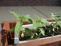 4月に種をまいたひまわりがぐんぐん成長しています。