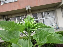昨年からの種がこぼれて、そのまま成長したひまわりは、もう花芽をつけています。