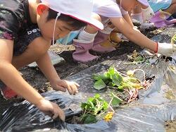 2年生が「けやき保育園」さんからのお招きを受けて、園児の皆さんと一緒に、さつまいもの苗植えにチャレンジしました。