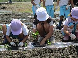 2年生が一生懸命にチャレンジして、最後までしっかり苗を植えることができました。