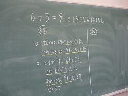 1年生は、算数の学習でした。『6+3=9』になるように、お話を作る学習です。
