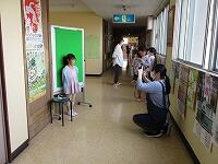 6年生から、校長室前に移動して、図書事務の先生と支援員の先生の合図で、にっこり笑顔で撮影しました。