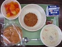 バーガーパン ハムカツ ソース クリームシチュー フルーツポンチ 牛乳