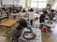 リースに松ぼっくりやどんぐり等の飾りを木工ボンドで接着する活動です。