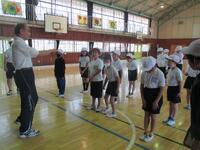 体育館にて、並び位置の確認や姿勢、ラジオ体操も行いました。