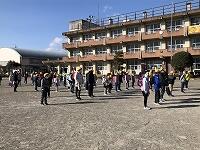 一斉下校のときも、かなり強い風が吹いていたので、いつもは校舎の方を向いて並ぶのですが、東に向きを変えてあいさつをしました。