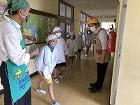 6月1日(月)登校再開初日は、あいにくの小雨になってしまいましたが、1年生から6年生までみんな元気に登校してくれました。