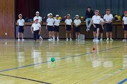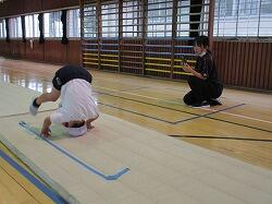 1、2年生が体育の時間にマット運動に取り組んでいます。