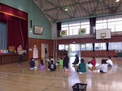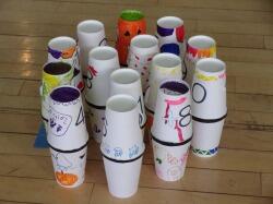 モルックは、モルックとよばれる木の棒を投げて、木のピンを倒し、得点を競うスポーツです。今回は、子ども達手作りの新聞紙を利用した棒、紙コップで作ったピンを使って実施しました。講師は、担任の先生です