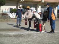 その後は、消火器の使い方を教えていただき、消火訓練を実施しました。
