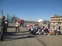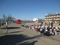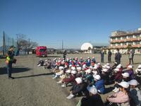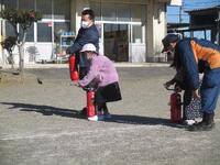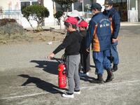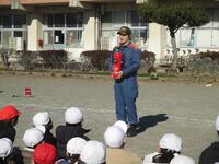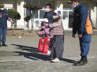 子供たちは、緊急地震速報を聞き、机の下にもぐり、頭を守りました。その後、火災発生の放送を聞いて校庭へ避難しました。職員も通報訓練を行いました。