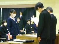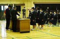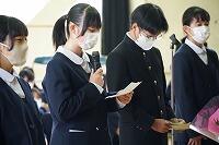 本校は、今年度82名の新入生を迎え、全校生徒266名となりました。子どもたちが本校の学舎(まなびや)で過ごす3年間で、友と支え合い、絆を深めながら、まさに筍(たけのこ)のごとく、まっすぐに成長できるよう、ご家庭・地域の皆様方と力をあわせてまいります。