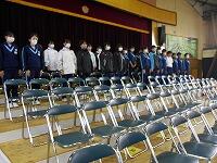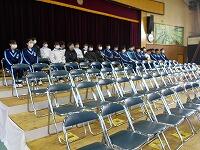 卒業式翌日のこの日、3年生が卒業し、進級まで3週間足らずとなった1・2年生が、前日の卒業式を振り返りながら、これから上級生としてあるべき自分について考える集会を行いました。