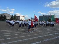 9日後に運動会を控えたこの日、5時間目には学年ごとの練習を行い、6時間目には全生徒で開会式の練習を行いました。