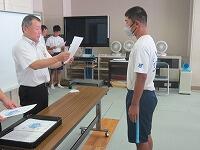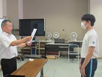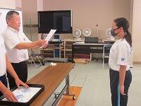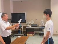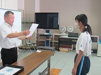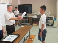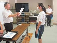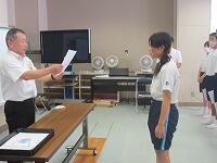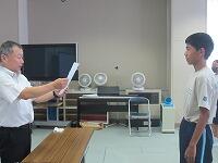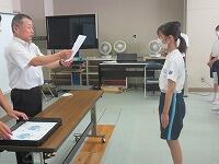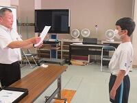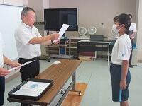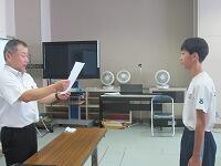 表彰状授与に続いて、始業式を実施しました。校長講話に続いて、2学期学級委員の任命と、新しい先生の紹介を行いました。